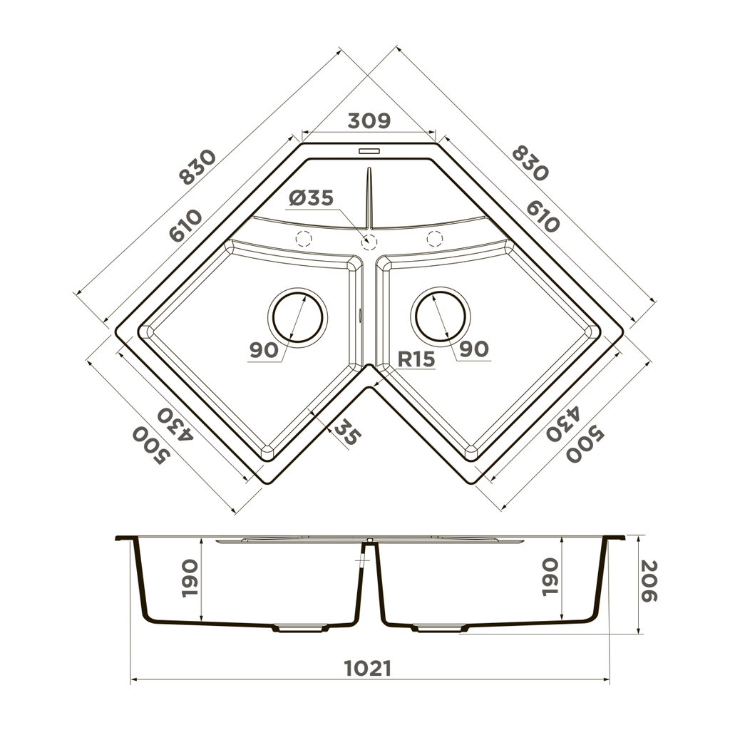 Omoikiri SUMI 83C WH - схема с размерами к мойке на разных языках на Hausdorf