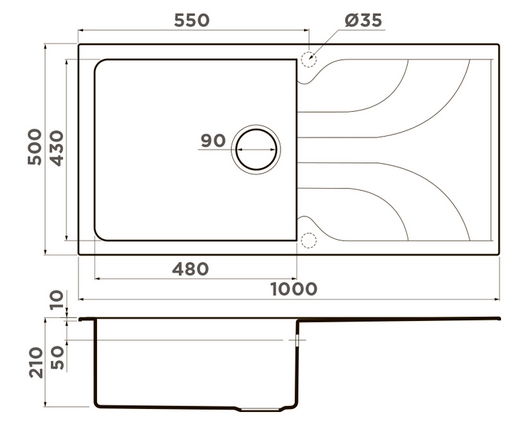 Сохранить файл: Схема с размерами к Omoikiri YASUGATA 100 GR.JPG, 60.75 Кб