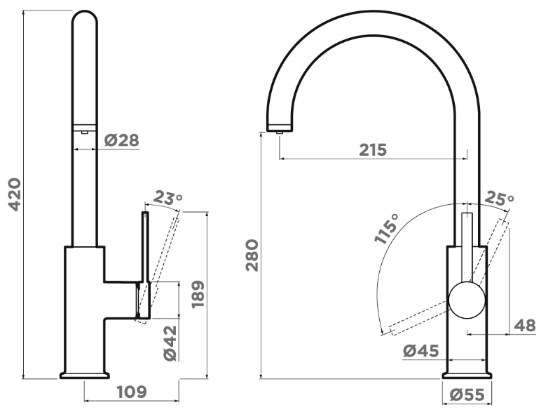 Omoikiri Okawa 2 Plus GM - схема с размерами к смесителю на разных языках на Hausdorf