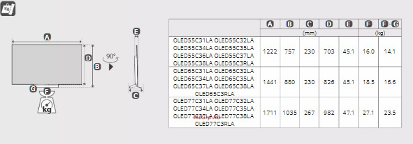 LG OLED65C3 - схема с размерами версия 2 к телевизору на разных языках на Hausdorf