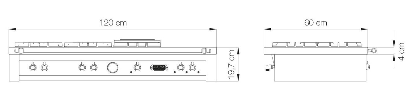 Lofra TRNM126/4BC BRONZE - схема с размерами к варочной панели на разных языках на Hausdorf