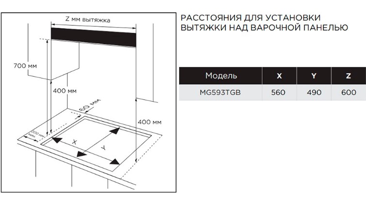 Midea MG593TGB - схема с размерами версия 2 к варочной панели на разных языках на Hausdorf