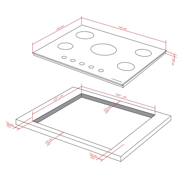 Kuppersberg FG 76 W - схема с размерами версия 2 к варочной панели на разных языках на Hausdorf