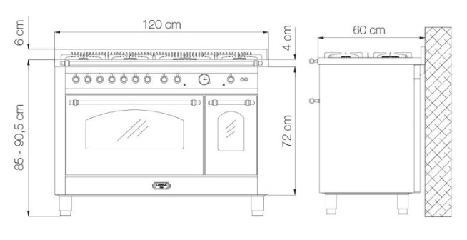 Lofra RRD126MFT+E/2AEO CHROME - схема с размерами к варочному центру на разных языках на Hausdorf