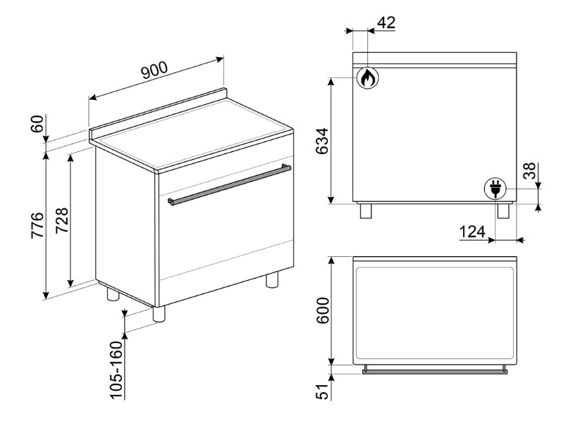 Smeg CX91GMBL - схема с размерами версия 2 к варочному центру на разных языках на Hausdorf