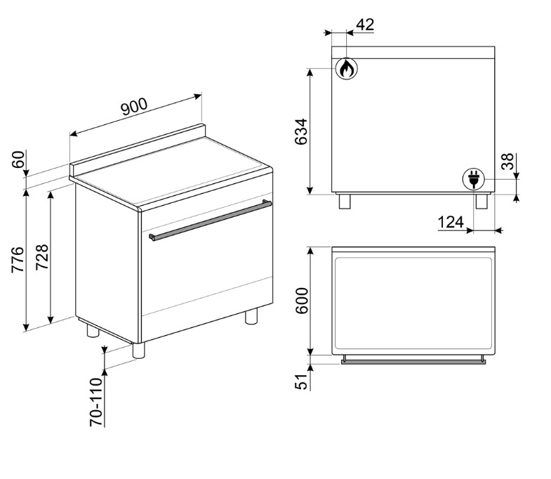 Smeg SX91GM - схема с размерами версия 2 к варочному центру на разных языках на Hausdorf