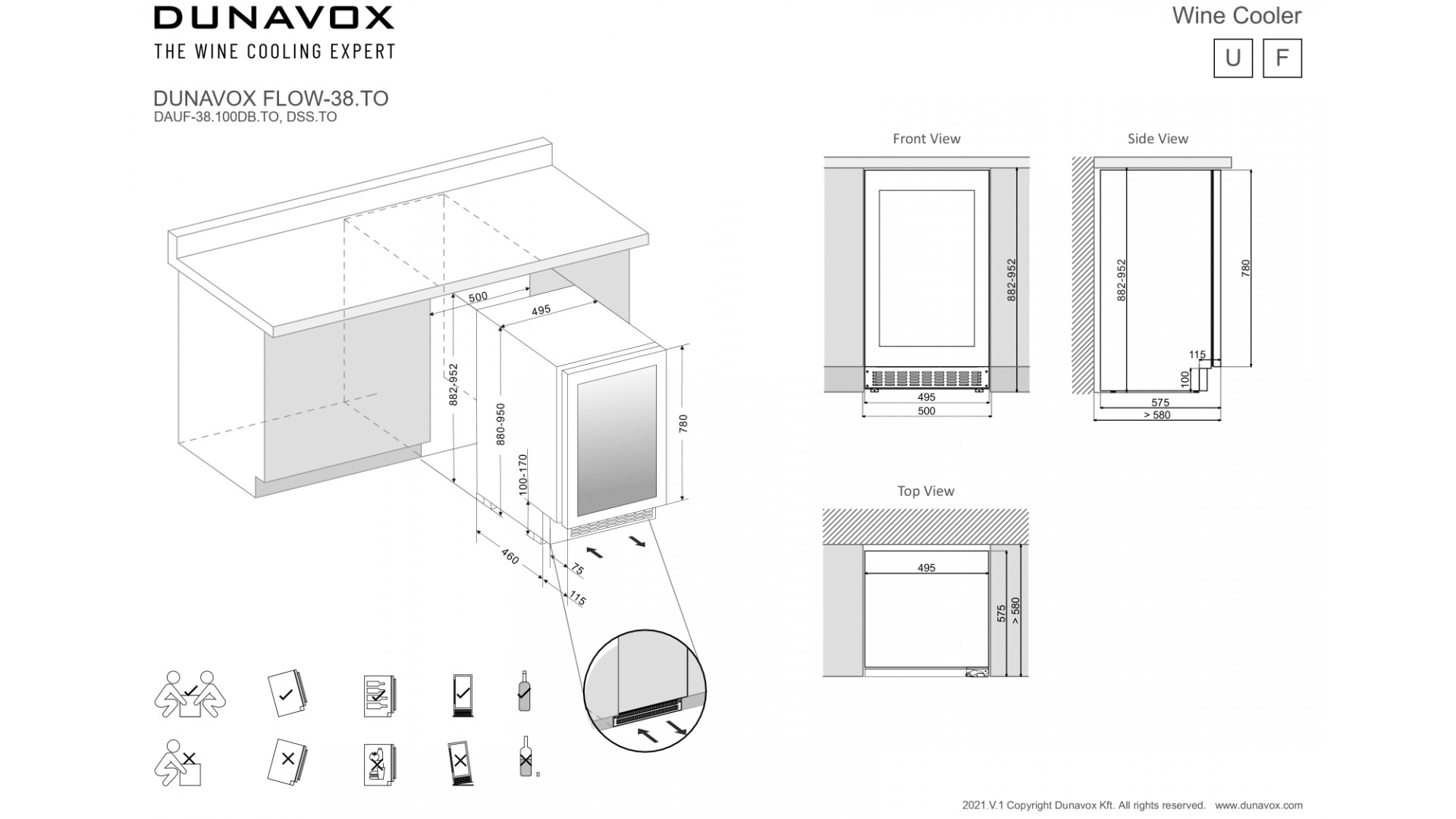 Dunavox DAUF-38.100DC - схема встраивания к винному шкафу на разных языках на Hausdorf