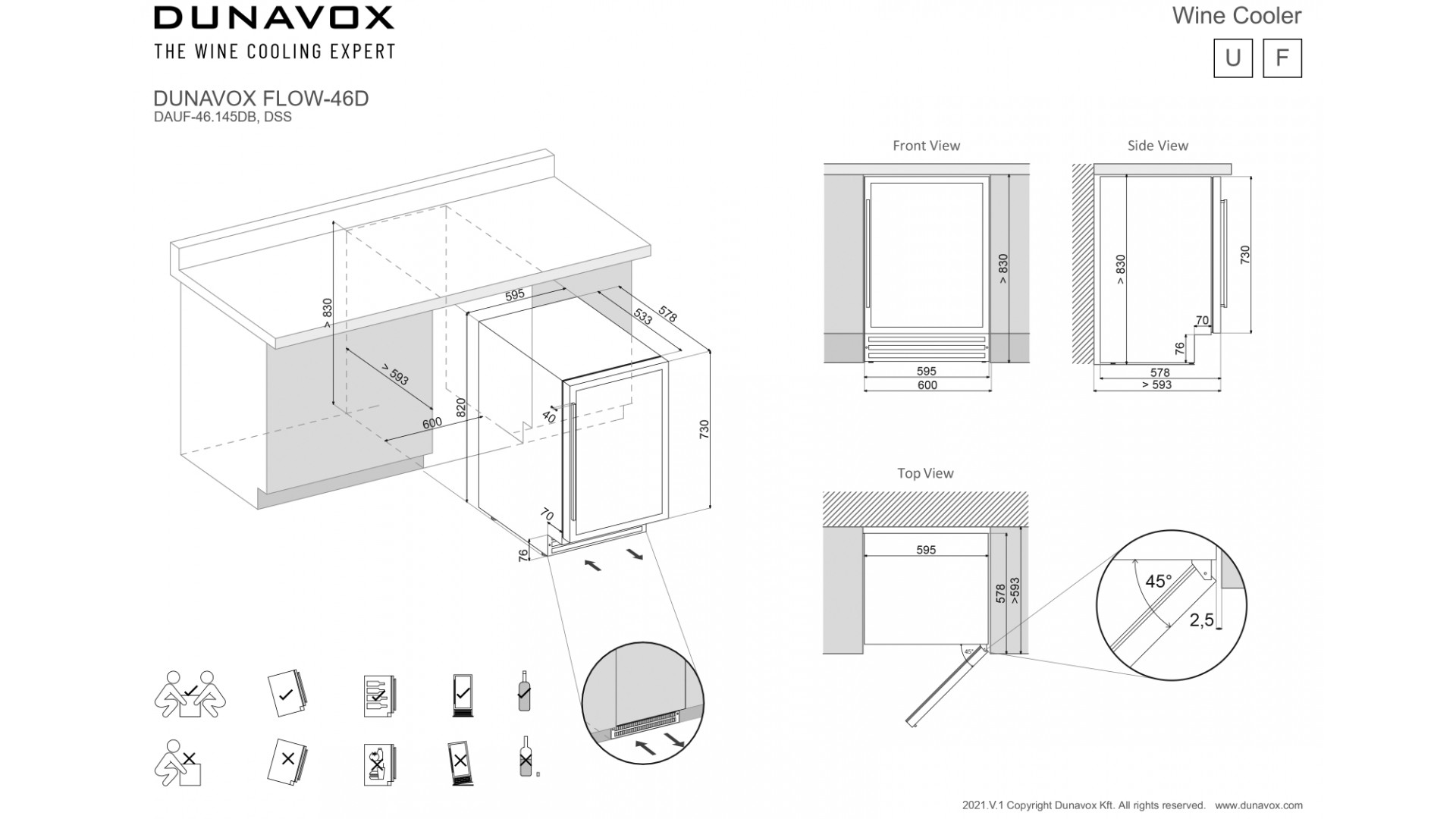 Dunavox DAUF-46.145DMB - схема встраивания к винному шкафу на разных языках на Hausdorf