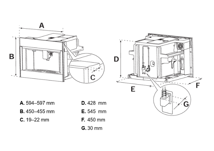 Bertazzoni CM45MOD2WTB - схема с размерами версия 2 к кофемашине на разных языках на Hausdorf