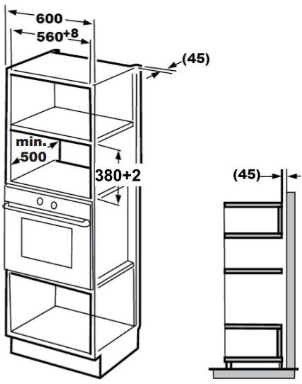 De Dietrich DMG2122W - схема встраивания с размерами к микроволновой печи на разных языках на Hausdorf