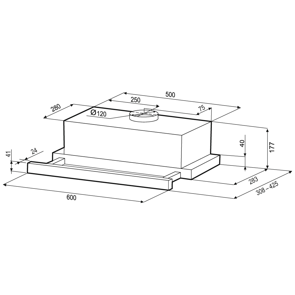 Встраиваемая вытяжка KRONA KAMILLA 600 2DN BL GLASS