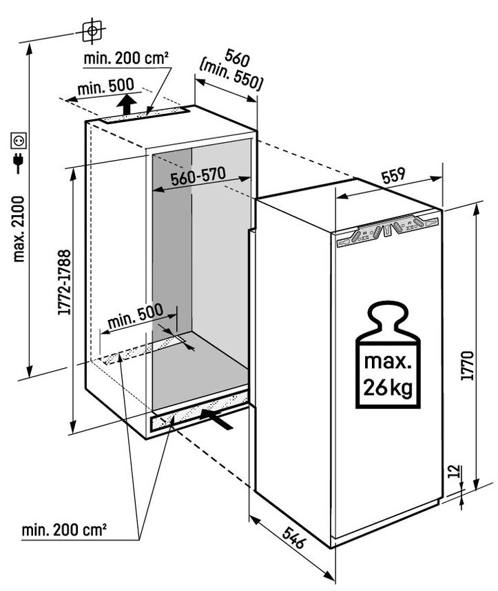 Liebherr IRBbsci 5171 - схема встраивания с размерами к холодильнику на разных языках на Hausdorf