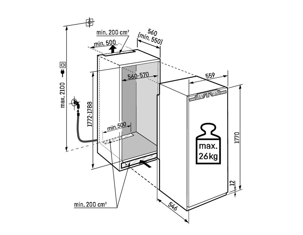 Liebherr IRBdi 5180 - схема встраивания с размерами к холодильнику на разных языках на Hausdorf