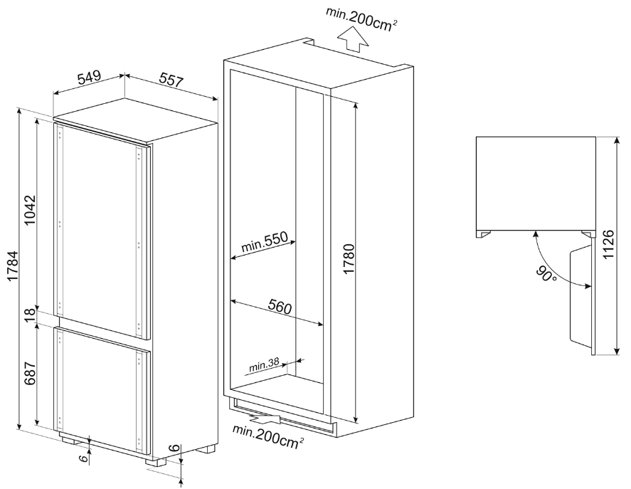 Smeg C9174DN2D1 - схема с размерами к холодильнику на разных языках на Hausdorf