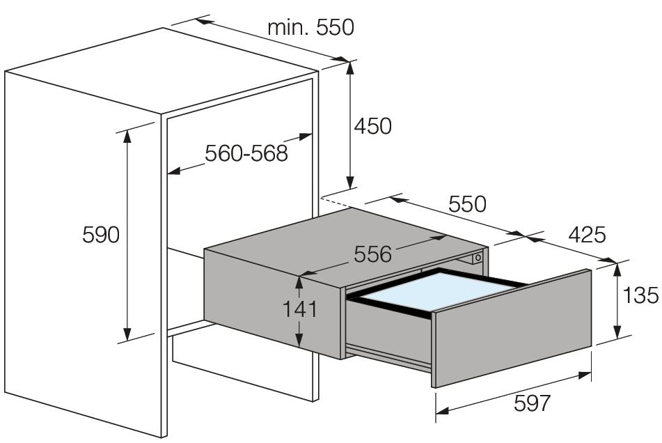 Asko ODV61BS1 - схема встраивания с размерами к вакуумному упаковщику на разных языках на Hausdorf