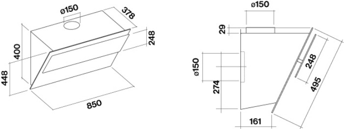Falmec Flipper 55 Black - схема с размерами к вытяжке на разных языках на Hausdorf
