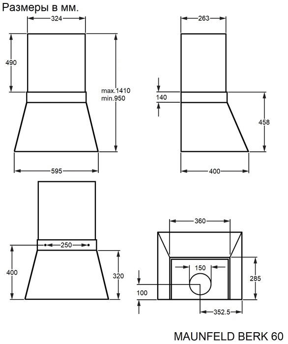 Maunfeld BERK 60 Black/Anthracite - схема с размерами версия 2 к вытяжке на разных языках на Hausdorf