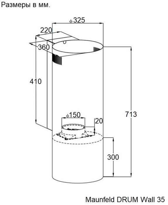 Сохранить файл: Схема с размерами к Maunfeld DRUM Wall 35 белый.JPG, 42.07 Кб
