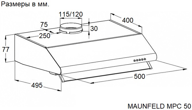 Maunfeld MPC 50 черный - схема с размерами версия 2 к вытяжке на разных языках на Hausdorf