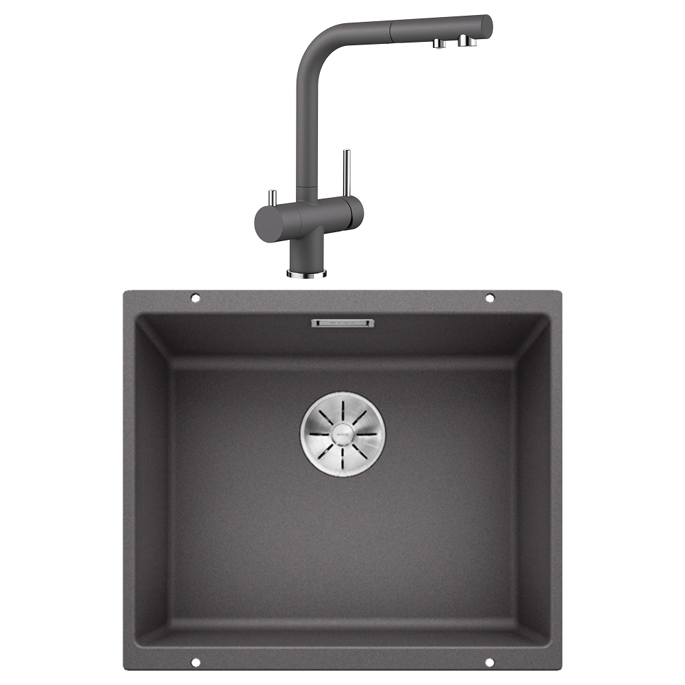 Комплект Blanco (мойка SUBLINE 500-U SILGRANIT + FONTAS-S II SILGRANIT темная скала) в Новосибирске