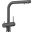 Внутри крана помещается шланг, который можно растянуть, чтобы достать струей воды до второй чаши мойки или тщательно сполоснуть посуду.