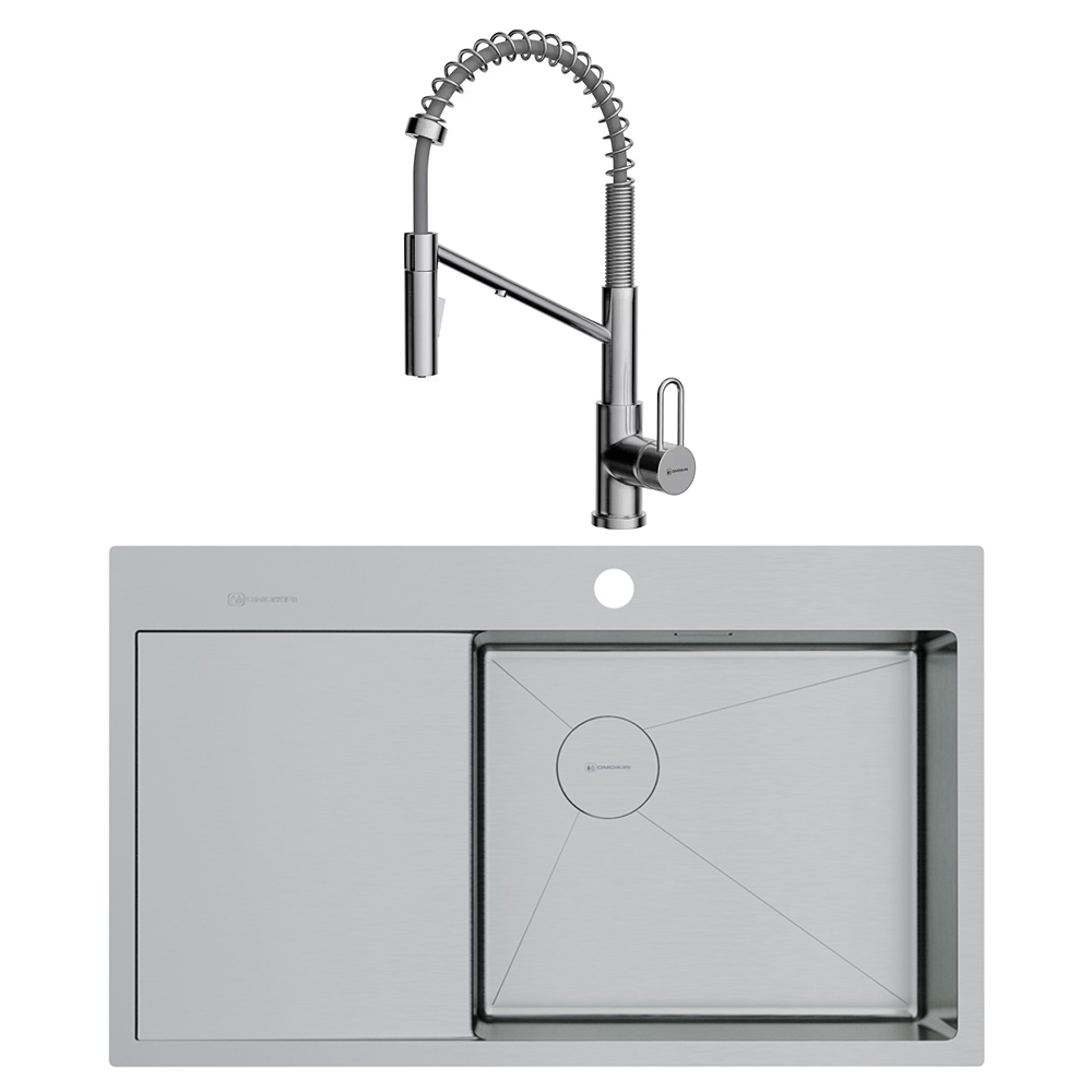 Комплект Omoikiri (мойка AKISAME 86 SIDE IN-R + смеситель MIKAWA 2 PLUS-SB BN) в Новосибирске