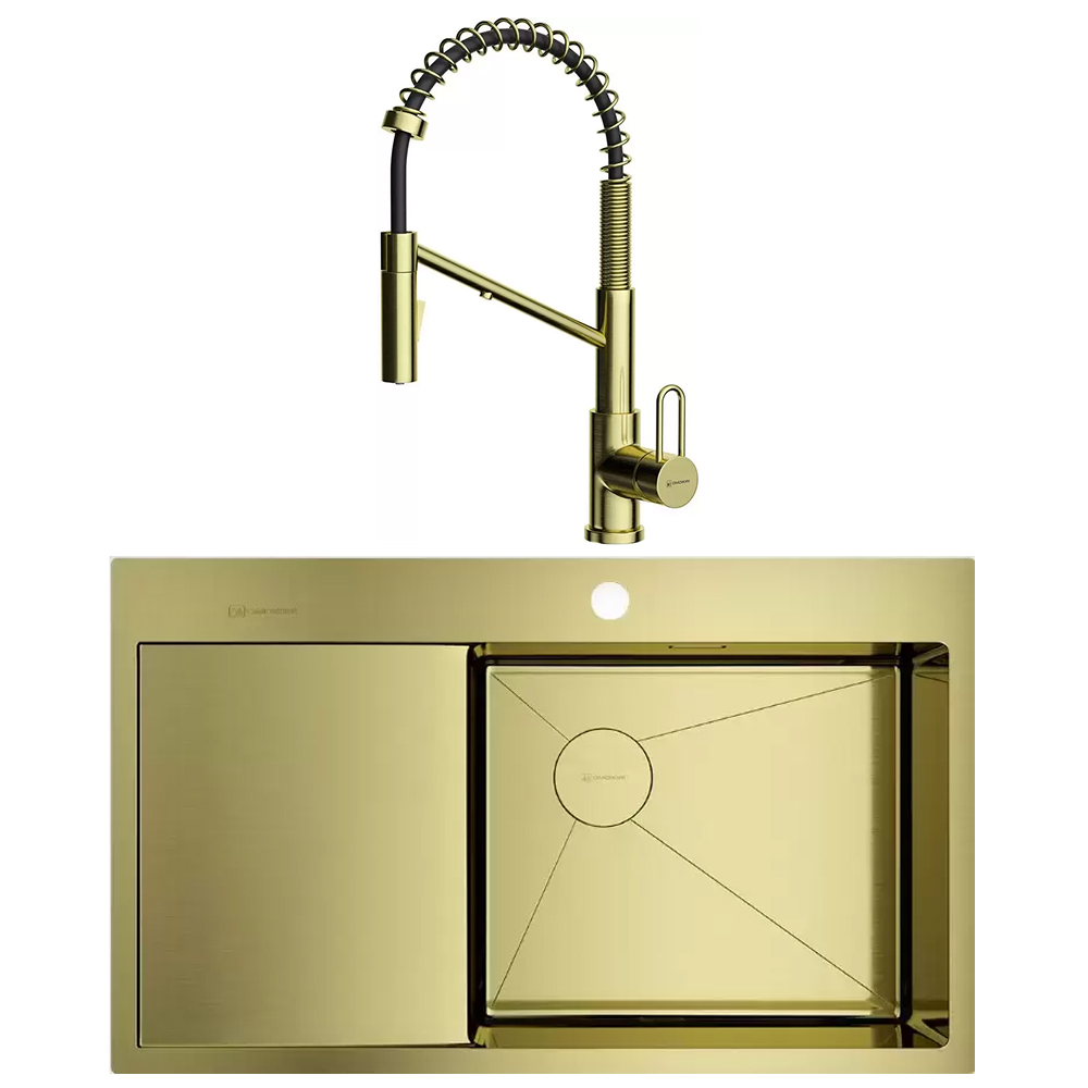 Комплект Omoikiri (мойка AKISAME 86 SIDE LG-R + смеситель MIKAWA 2 PLUS-SB LG) в Новосибирске