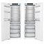 Встраиваемые холодильники монтируются в нишу или колонну. Передняя их часть закрывается декоративным мебельным фасадом и снаружи не отличается от дверцы обычного кухонного шкафа, так что их не нужно подбирать под интерьер помещения. Объем этих холодильников, как правило, несколько меньше, чем у отдельностоящих, так как при встраивании необходимо оставлять свободное пространство для вентиляции. Они отличаются меньшим уровнем шума, а также лучше держат холод и отличаются большей экономичностью из-за дополнительного слоя изоляции. Ассортимент этих холодильников не так велик, как у отдельно стоящих, установка более трудоемкая, а стоимость обычно несколько выше.